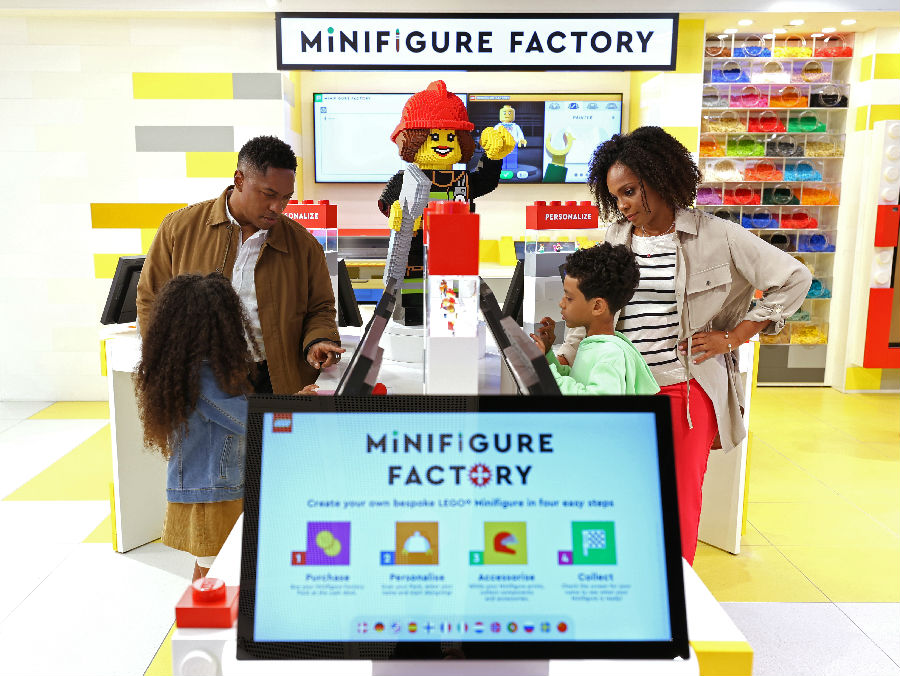 在两层楼的空间中,顾客们可以尽情探索最新的乐高套装,孩子们还能在乐高首个定制工坊(Personalization Studio)中互动玩耍。在定制工坊内,最吸引人的当属乐高迷你人仔工厂,所有人都可以设计专属他们自己的乐高人仔,再亲眼见证其被打印制作出来。商店中的另一新功能,则是向顾客们提供了百分百AI沉浸式的积木乐园体验。家庭成员们可以通过扫描他们自己创造的乐高,令其进入一个人机对话的的数字化乐高世界,观看它在太空和纽约的城市环境中旅行并完成挑战。