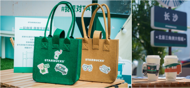 不只是咖啡,咖啡车还配套了高颜值周边和现场趣味互动,美味与趣味并存。消费满额可获赠年轻时尚的限量礼品毛毡包,参与互动问答 “咖啡一百问”,过程轻松愉悦,不但可以增长咖啡知识,还可获得小惊喜。顾客亦可凭消费记录及带话题分享社交平台获得扭蛋奖励,值得一提的是,扭蛋互动小礼品可以获取毛毡包DIY配饰,打造属于你的私人订制。现场还精心准备了只在咖啡车才见得到的长沙方言版杯套,“这杯想醉哒”“你望哒咖啡,我望哒你”等只有本地人听得懂的接地气文案让人倍感亲切。