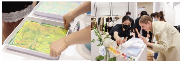 现场采用系列中的色彩颜料,进行水拓丝巾互动,嘉宾根据自己喜好DIY丝巾,可以用作日常头巾、包饰等日常穿搭,展现都市生活各种的多元可能性,回溯美式经典,体验耳目一新的色彩美学。