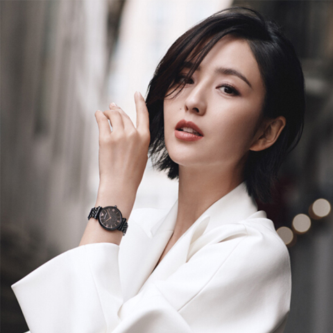 阿玛尼手表品类中最受欢迎的莫属于佟丽娅同款爆品满天星,对于甜美、女神范的女生来说最适合不过。玫瑰金表壳装饰间金表带,表盘上星空般的水晶点缀,优雅气质如圣洁般璀璨动人,以白色圆领衬衫、黑色半身裙,再搭配一双同色系高跟鞋,一副高雅禁欲女神的气息迎面而来。